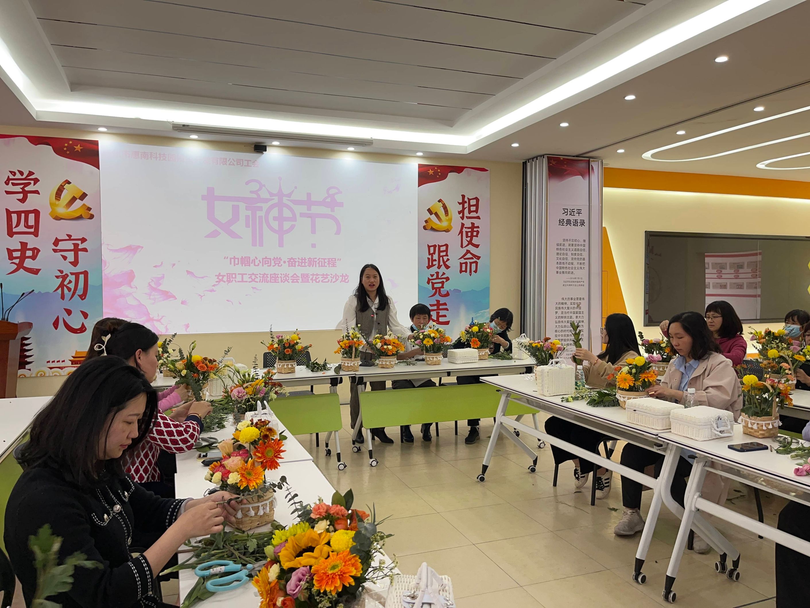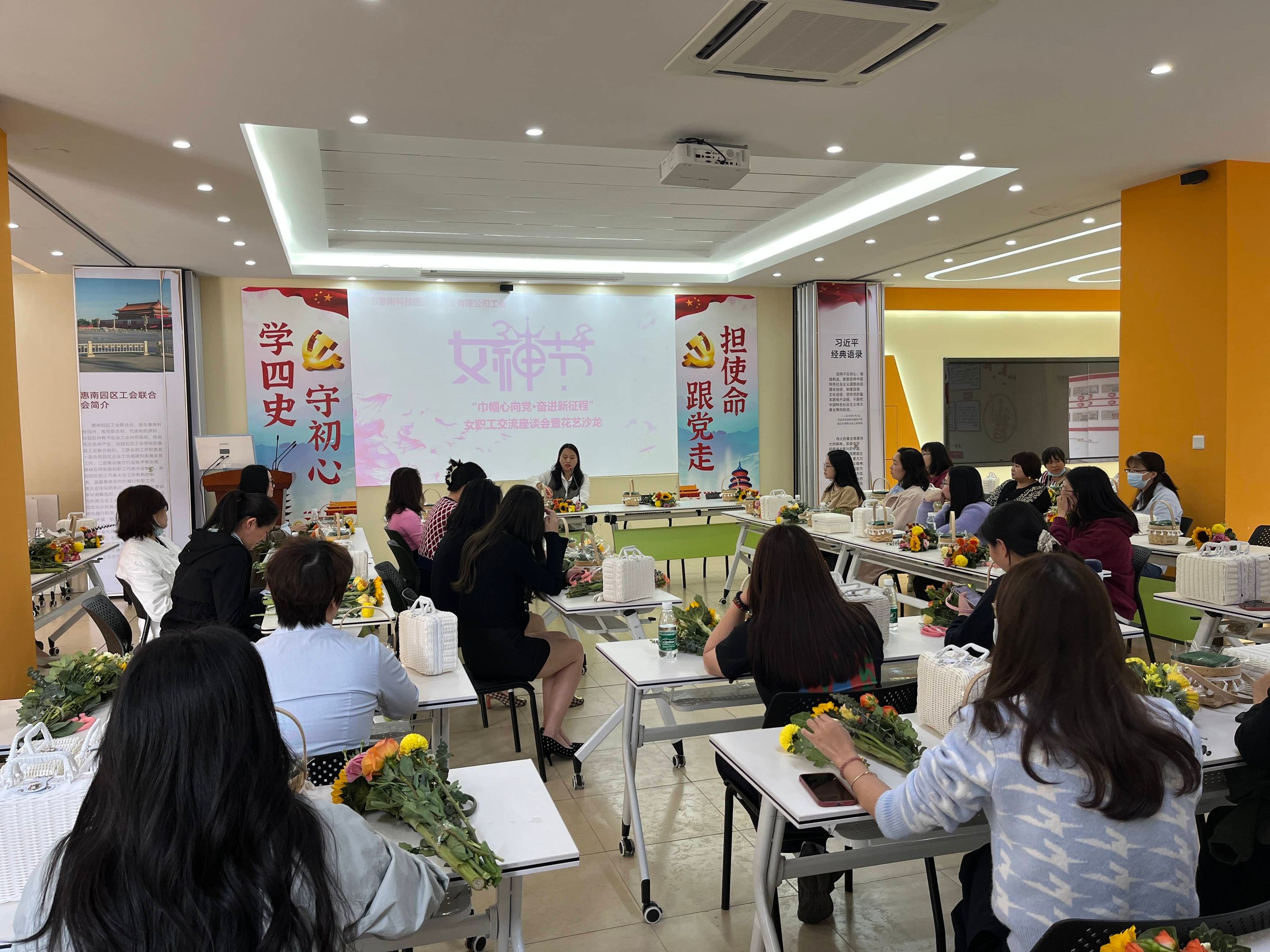 為營造三八國際勞動婦女節(jié)活動氛圍,豐富女職工的業(yè)余生活,提高女職工陶冶身心生活藝術(shù)。3月7日下午,投開公司工會在惠南黨群服務(wù)中心舉辦“巾幗心向黨·奮進(jìn)新征程”主題座談會暨花藝沙龍?;菽贤堕_公司工會會員40余人參加活動。