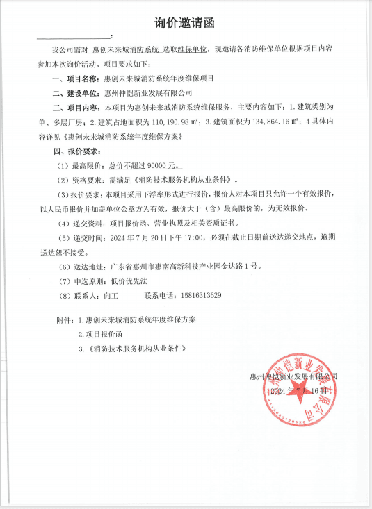 附件1:惠創(chuàng)未來城消防系統(tǒng)年度維保方案.doc