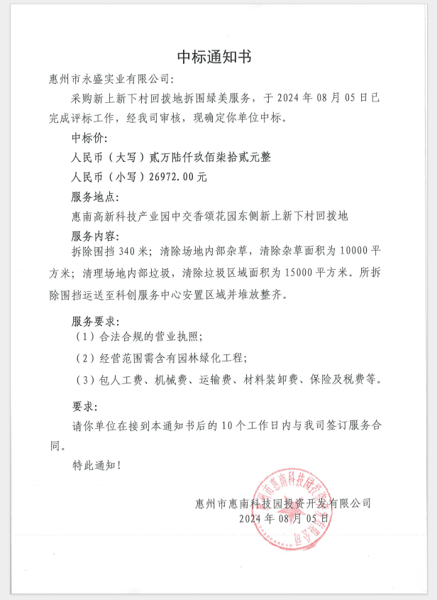 【中標(biāo)通知】采購(gòu)新上新下村回?fù)艿夭饑G美服務(wù)