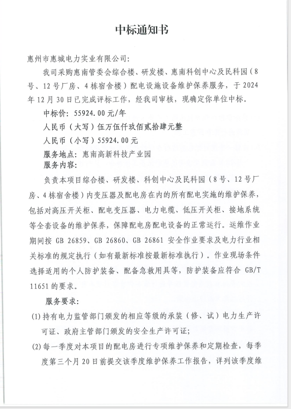 【中標(biāo)通知】采購惠南管委會(huì)綜合樓、研發(fā)樓、惠南科創(chuàng)中心及民科園(8 號(hào)、12號(hào)廠房、4棟宿舍樓)配電設(shè)施設(shè)備維護(hù)保養(yǎng)服務(wù)