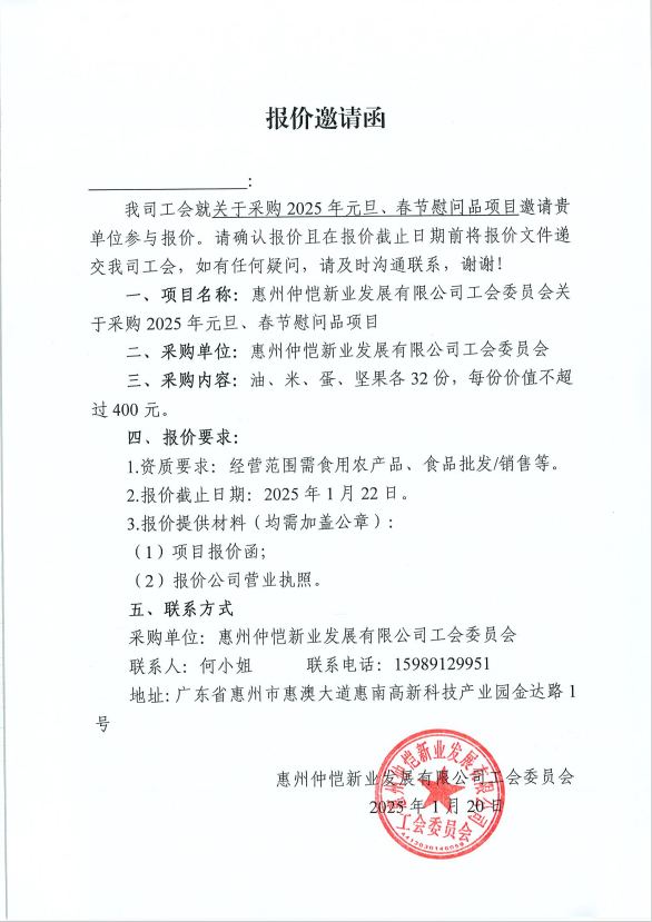 關(guān)于采購2025年元旦、春節(jié)慰問品項(xiàng)目