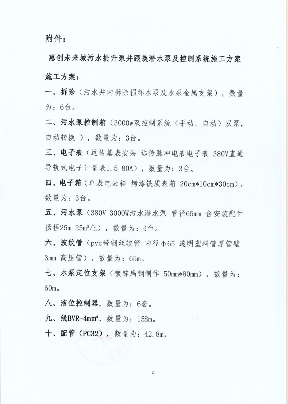 【報價邀請函】惠創(chuàng)未來城提升泵井采購更換潛水泵及控制系統(tǒng)項目